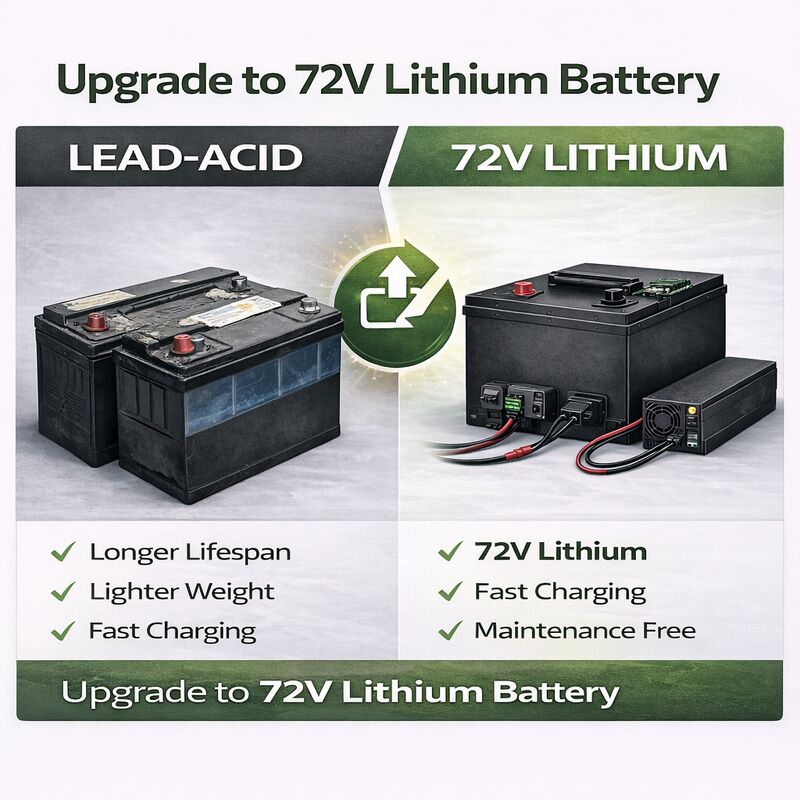 Upgrade your golf cart from lead-acid batteries to a high-performance 72V lithium battery system. Improve runtime, reduce weight, and enhance overall efficiency with our complete conversion solution.